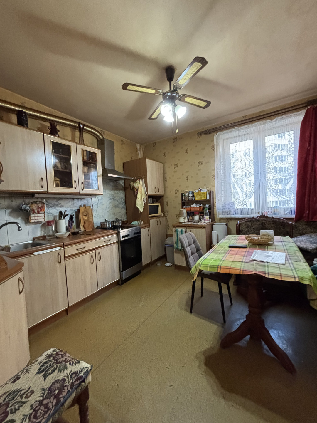 Общая площадь квартиры - 74,6 м2. Удобная, современная планировка "распашонка". Кухня – 10,9 м2, три изолированные комнаты: гостиная – 17,4 м2 и две спальни – 12,2 м2 и 10,4 м2, из спальни выход на лоджию. Раздельный С/У с ванной. Просторный коридор-прихожая – 16,3 м2. Квартира в жилом состоянии, требуется ремонт.